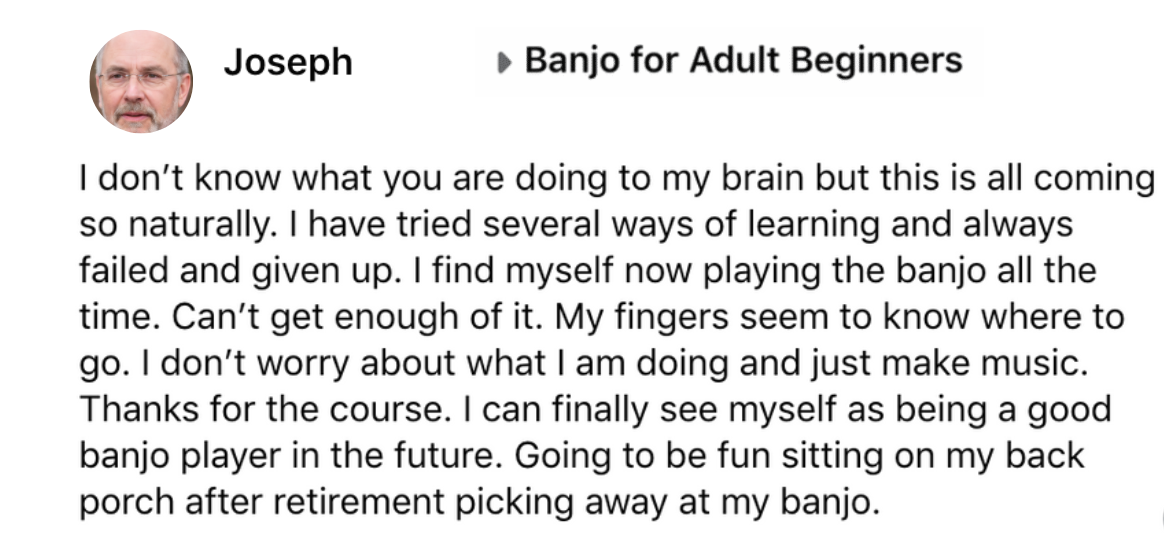 The Brainjo Method is designed to provide the most fun, foolproof, and frustration-free path to learning the banjo.
